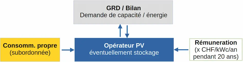 Le GRD peut contrôler les injections à 0-100 %, la consommation propre est subordonnée